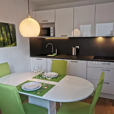 Na voljo je popolnoma opremljena kuhinja s pečico, električnim grelcem vode in hladilnikom. Hotel, restavracija in picerija Kotnik ponuja sredozemske jedi in je oddaljen 2,2 km. Avtobusna postaja Log pri Kranjski Gori Petrol je v neposredni bližini tega 40 m² velikega apartmaja.